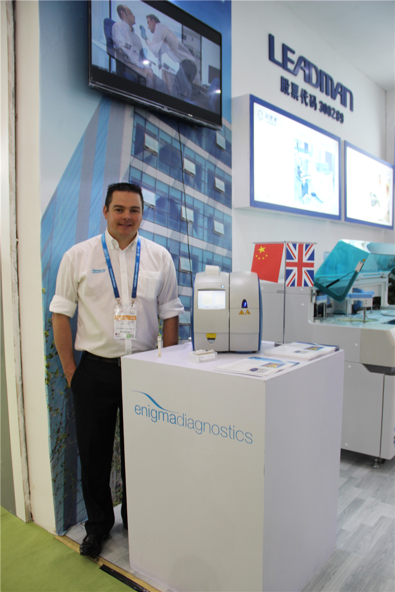 在分子诊断方面,会上展出了Enigma Mini-lab全自动化分子检测平台。Enigma ML是POCT应用和分子诊断技术的完美结合。资深工程师James Wood为到场观众详细讲解了其诸多优点:此款完全自动化的PCR反应系统可广泛应用于临床线上买球(集团)官方网站、重症监护及外科手术室、疾控中心线上买球(集团)官方网站和流行病学研究等多种领域。该系统结合了实时荧光PCR反应的高灵敏度、高特异性和POCT类产品检测快速、简易的特点,将反应所需的全部试剂预装入一次性卡架内进行操作,免去了之前PCR产品费时费力的样本核酸提取和其它操作过程。数据的输入和设定可通过触摸屏来简单操作,检测报告由一部内置打印机输出。所有检测结果实时加密上传云端。Enigma ML系统可以在不同的医疗健康项目需求下提供灵活配置,它的出现颠覆了原有分子诊断产品需要专属线上买球(集团)官方网站以及专业操作人员进行操作的概念,Enigma ML产品完全可以实现在任何非线上买球(集团)官方网站条件下的正常使用,对操作者无需任何专业要求,是POCT分子诊断领域毋庸置疑的领导者。